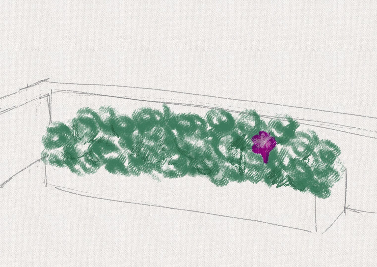小筑飛在天空感受著輕盈,在看見一棟周圍都是雲層的商業大樓後,進入了大樓內。客廳擺設簡約,有個約能坐五、六人的白色沙發,幾個不同色調的抱枕,還有簡單的茶几。走上踏階進入飯廳,有張長方型的餐桌,上頭有水壺與水杯。後方是L型的廚具,三口式的黑晶爐與烤箱,有個大大的流理台,水缸和米缸放在動線上。屋內的設計有多扇落地窗,臥室是全白色系,用張簡單的小木桌取代梳妝台。貴重物品皆存放在保險箱中,從書房內的落地窗進入後花園,見著的是健康生長在一片綠叢中的牽牛花。